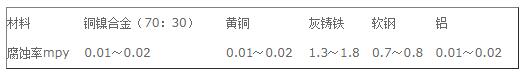 表1是常用材料的腐蝕率。使用臭氧在循環(huán)冷卻水系統(tǒng)運(yùn)行條件下常用材料的腐蝕率: