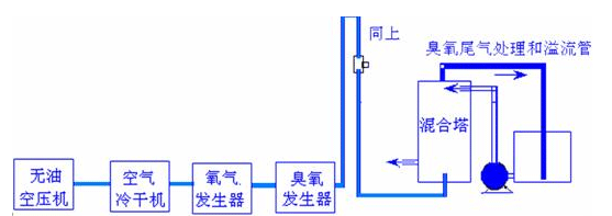 目前在世界范圍內,純凈水、天然水(山泉水、礦泉水、地下水、污水處理等經過過濾等工序制成),已普遍采用臭氧消毒;同時氧化水中的各種雜質,以達到凈化水的效果。在自來水 臭氧凈化應用時,國際常規(guī)標準為0.4mg/L的溶解度值保持4分鐘,即CT值為1.6。污水保持溶解時間可以略微長15-30分鐘下表為參考值: 氣水混合連接圖1.(小型氧氣發(fā)生器自帶無油空壓機,8T水以上時要另配套無油空壓機和冷干機),臭氧在水處理中主要作用以下方面: