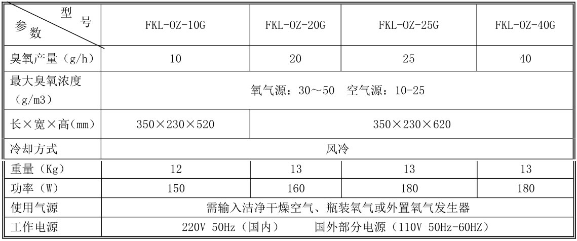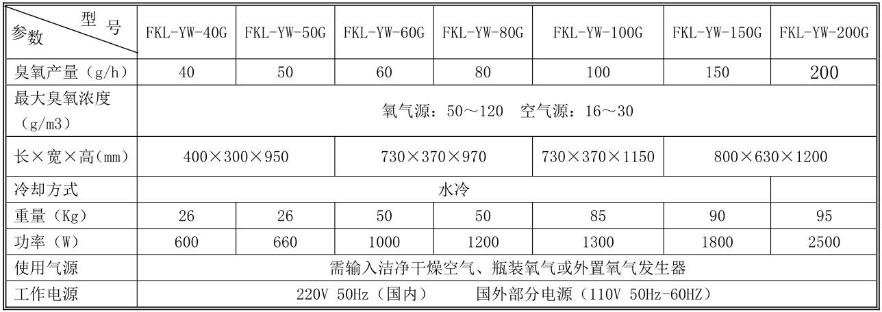 工業(yè)桶裝水、純凈水處理設(shè)備、污水處理、中水回用、空氣殺菌消毒( 食品車間消毒、 實(shí)驗(yàn)室、 冷庫(kù)消毒、GMP\HACCP 車間凈化) 、 中央空調(diào) 循環(huán)冷卻水消毒、養(yǎng)殖消毒等技術(shù)參數(shù)、圖表: FKL-OZ-10~40G( 注:以下參數(shù)、機(jī)器圖片可能有適當(dāng)變動(dòng) )